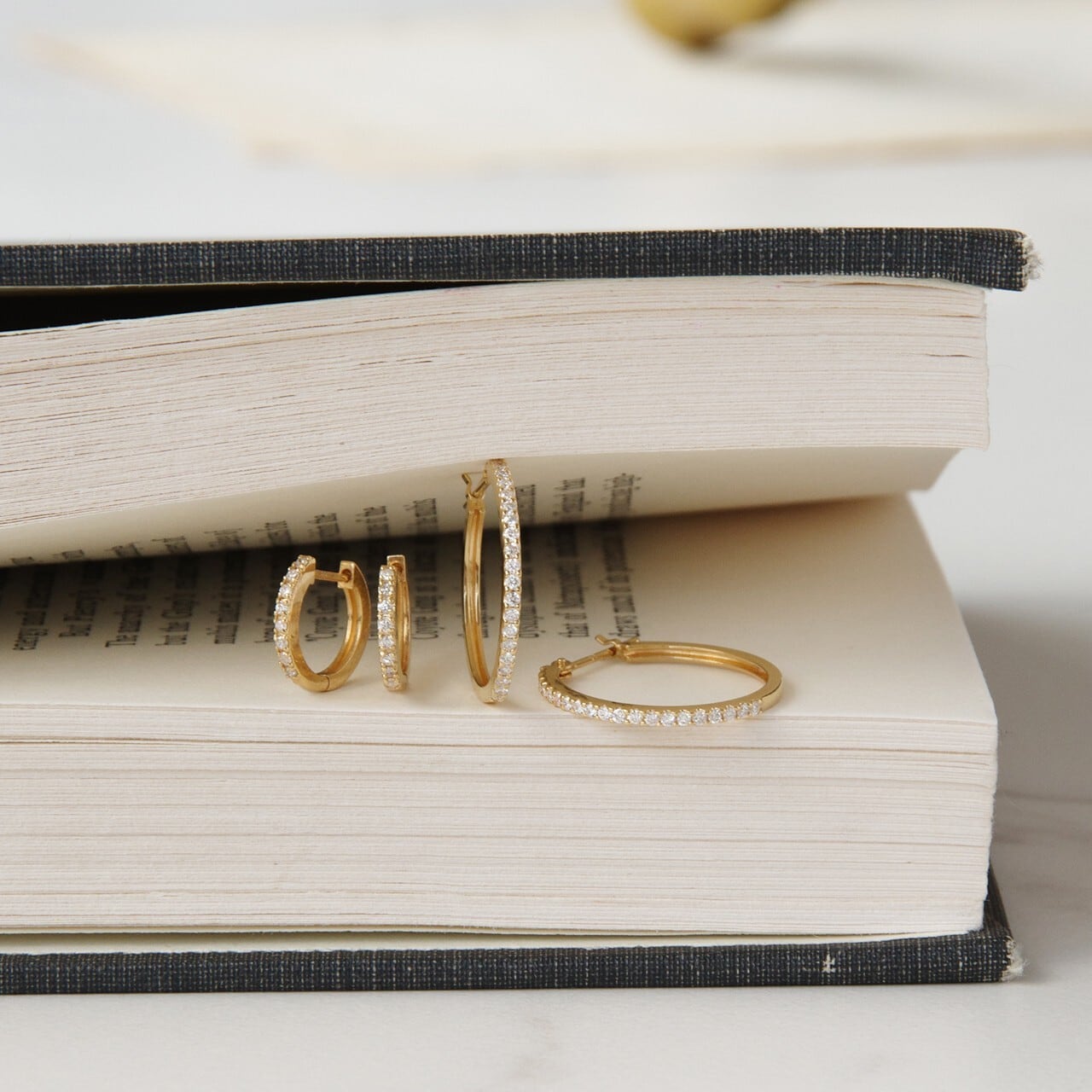 直径20mmのフープにクリアな煌めきを象るダイヤモンドを一列に並べ、イエローゴールドとの一体感を生み出すように彫り留めたフープピアス。素材の美しさを最大限に引き立てるよう、大き目フープにダイヤモンドをふんだんに使用しました。