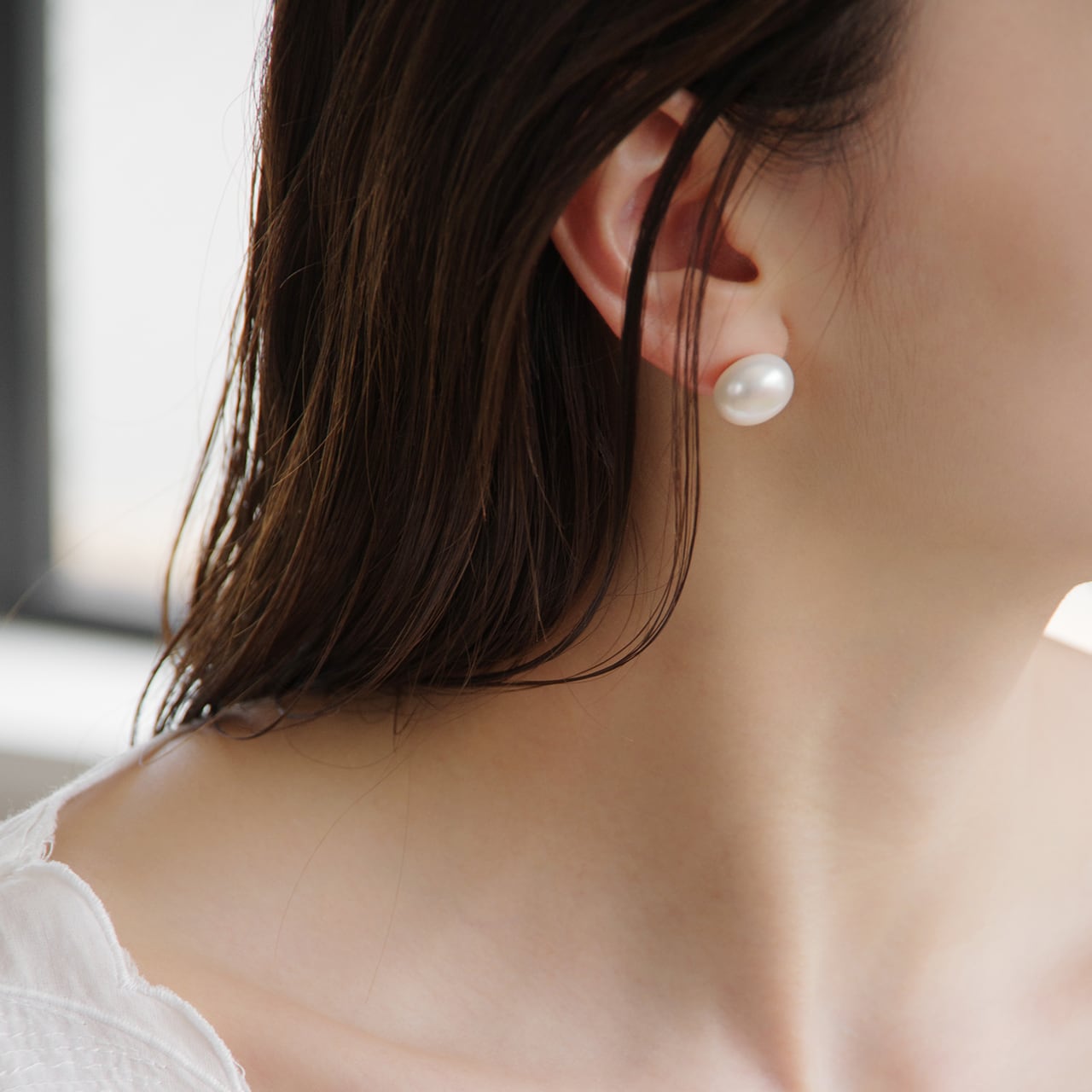 耳元にそっと華やぎを添える、大粒の淡水パールピアス。