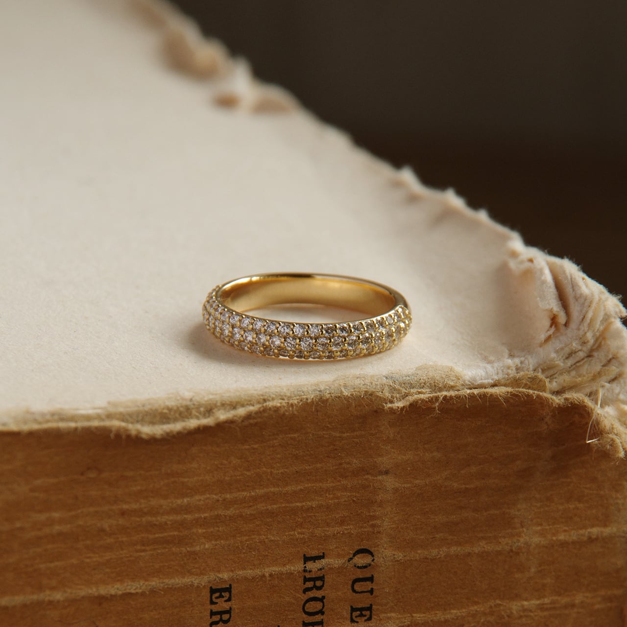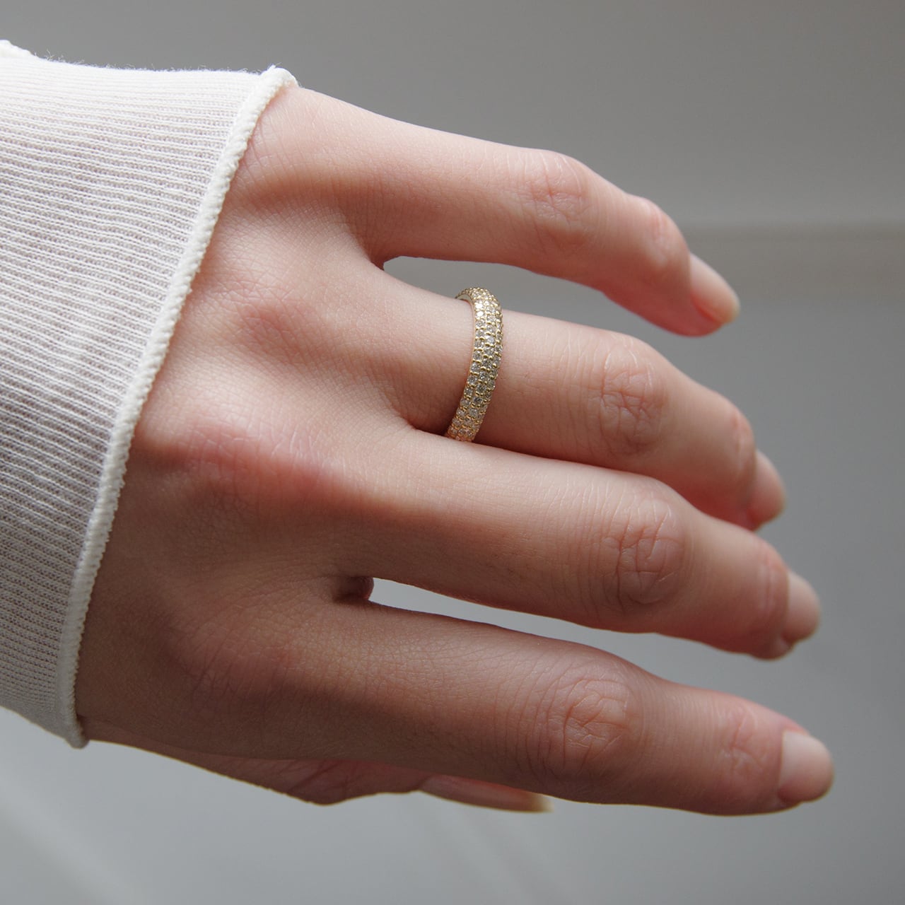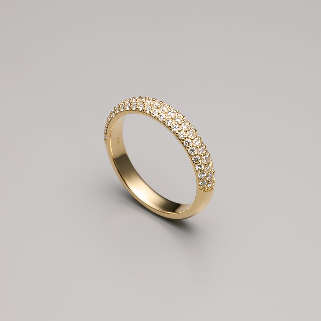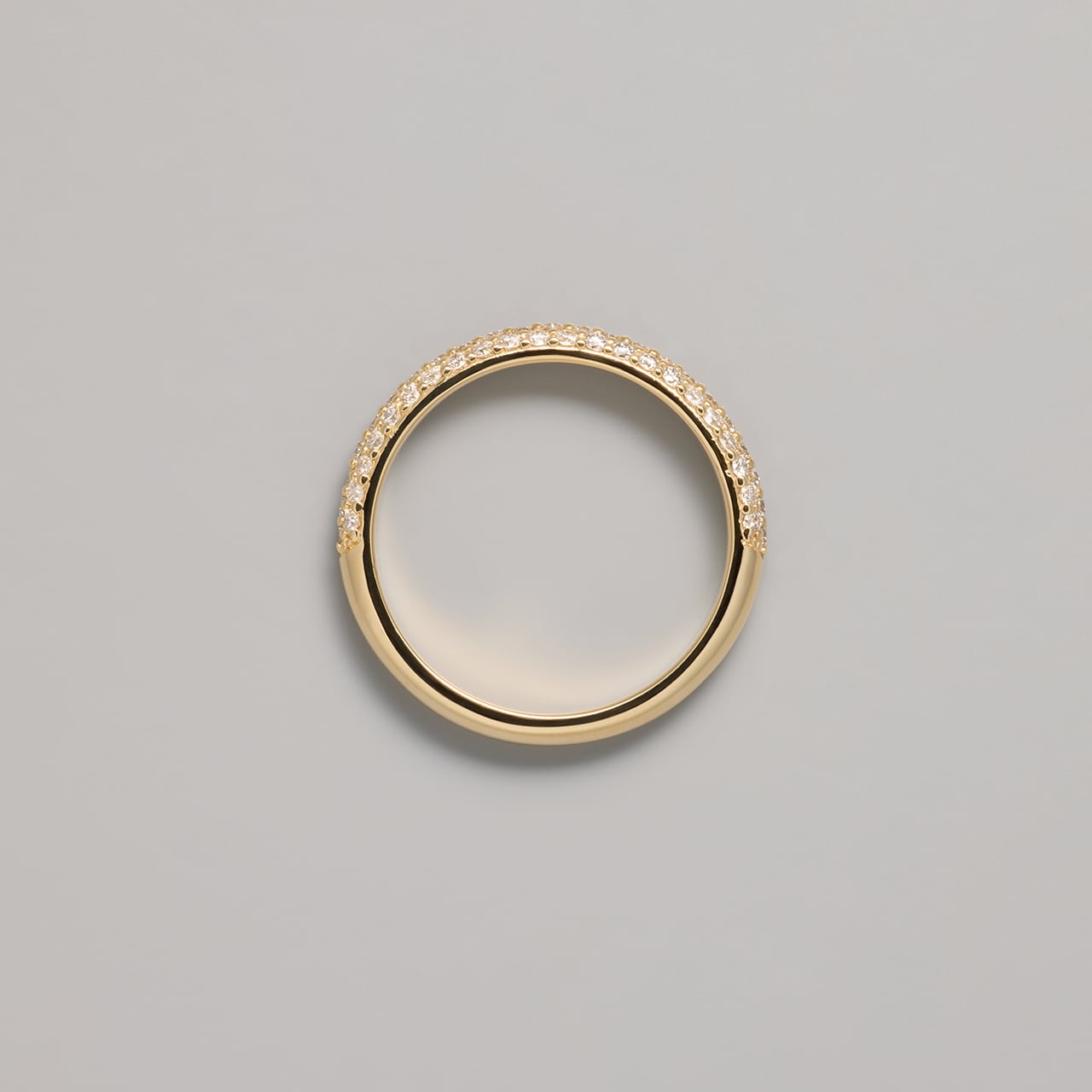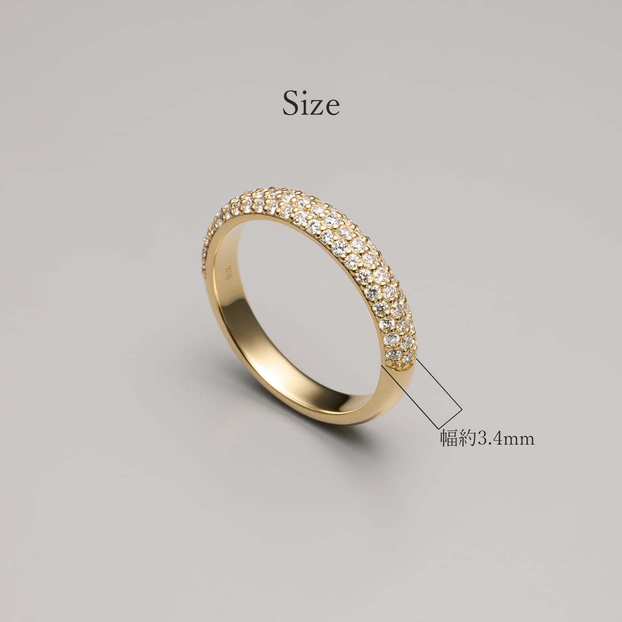 指先に67粒ものメレダイヤを贅沢に敷き詰めた、K18のパヴェリング。