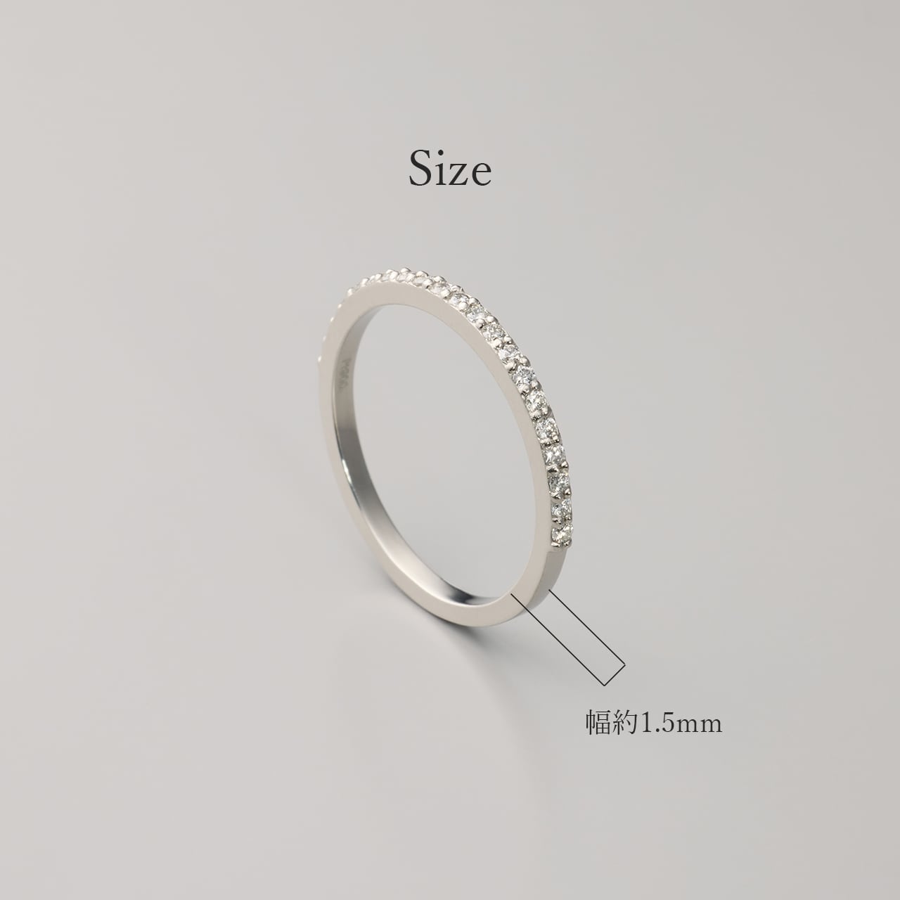 クールな艶感を湛えたプラチナが、ダイヤモンドの透明感ある輝きを引き立てるデザイン。ミニマルなハーフエタニティのフォルムが、凛とした空気をまとい、都会的で洗練された手元を演出します。流行にとらわれることなく、歳を重ねるほどにしなやかに馴染んでいく。芯のある美しさを日常にそっと添え、ほんの少し気持ちを高めてくれる存在です。自分へのご褒美にはもちろん、ギフトとしても喜ばれるおすすめの一本。