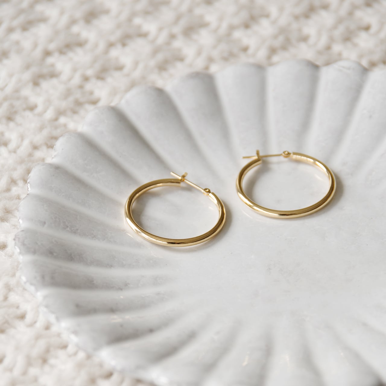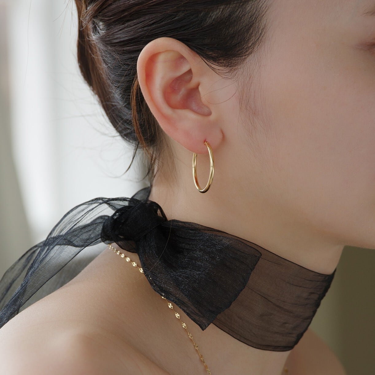 大きすぎず、華やかさも持ち合わせる絶妙なサイズ感は、日常に取り入れやすく、長く愛用できる大人のフープピアスです。