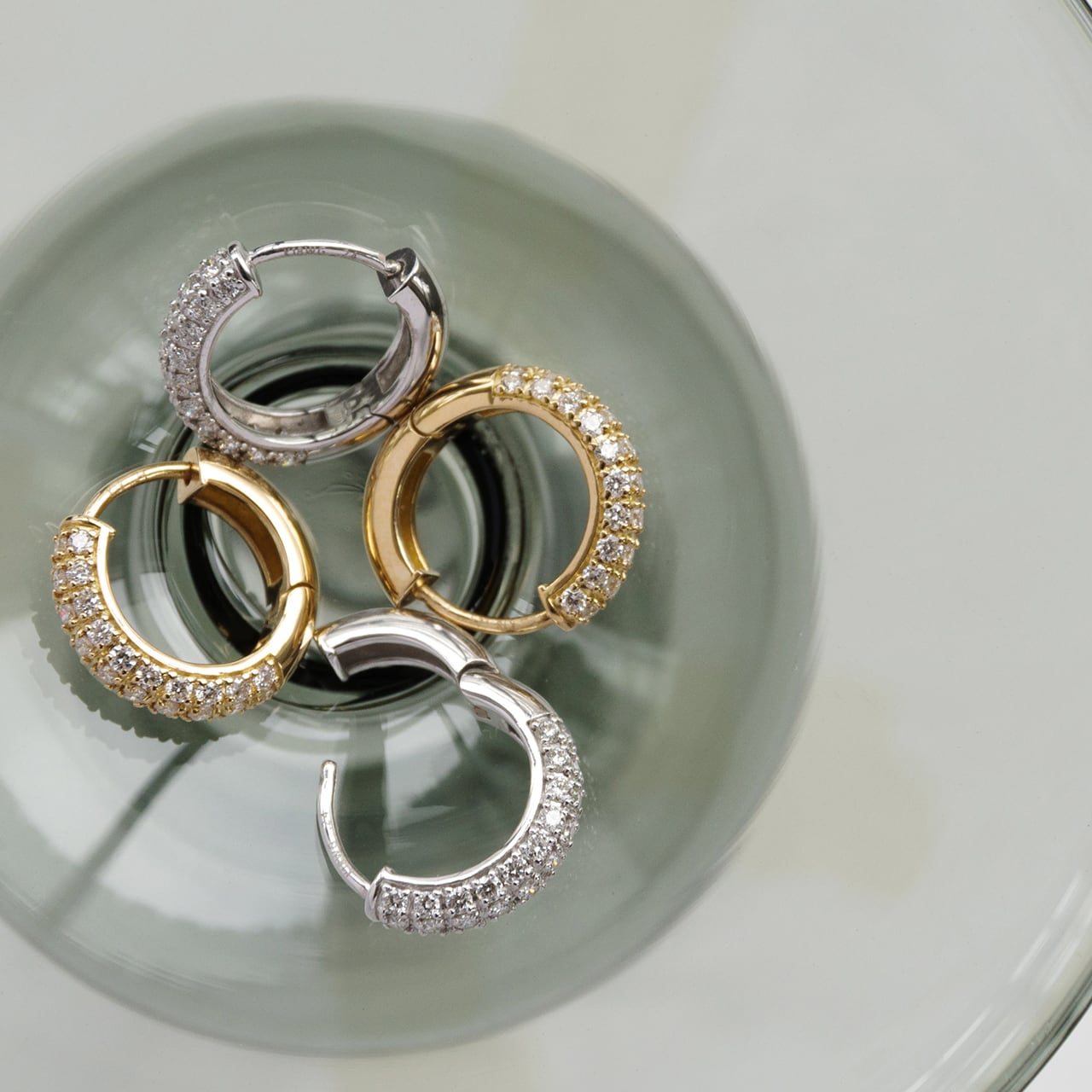 片耳に30粒ものメレダイヤを贅沢に敷き詰めた、永遠の定番パヴェフープ。