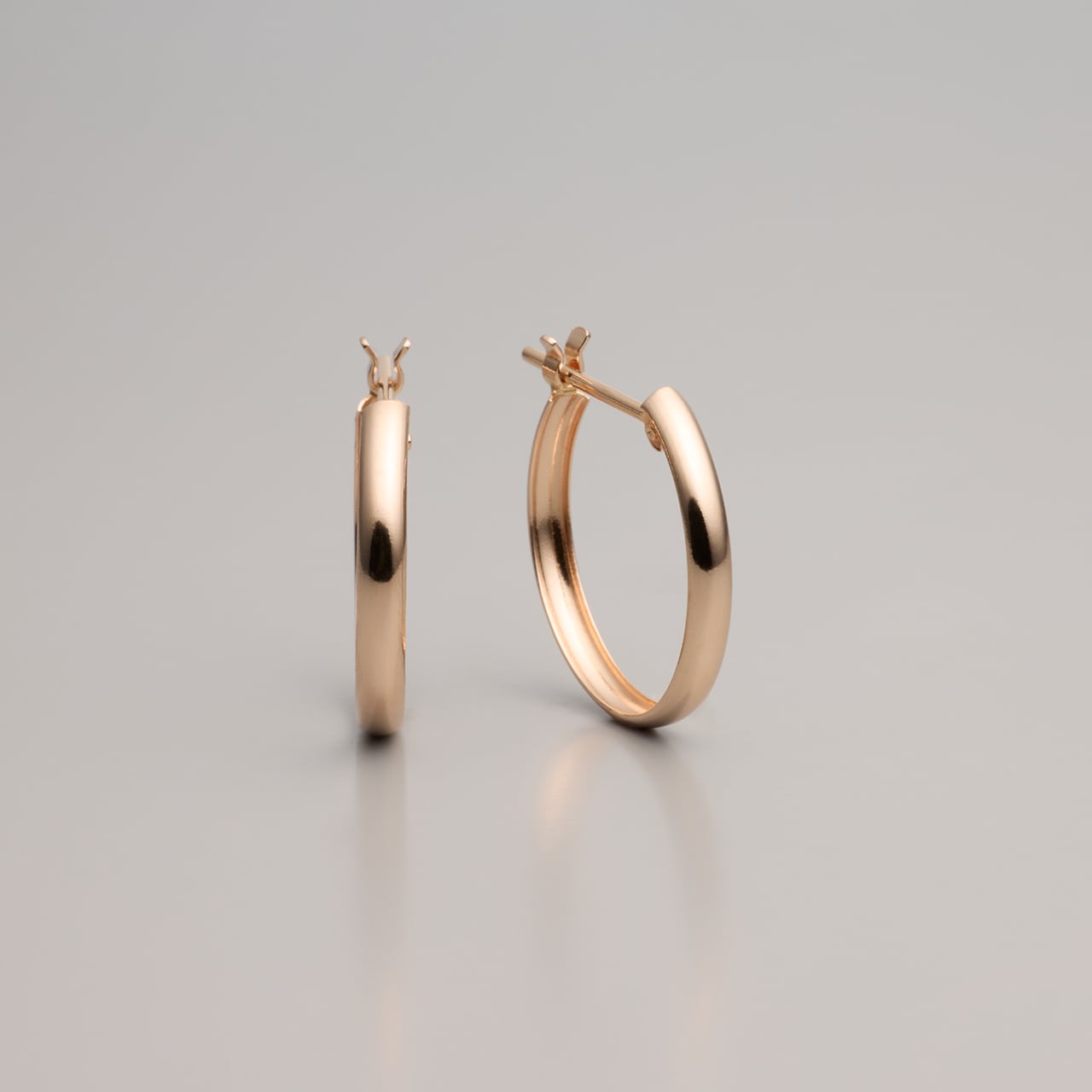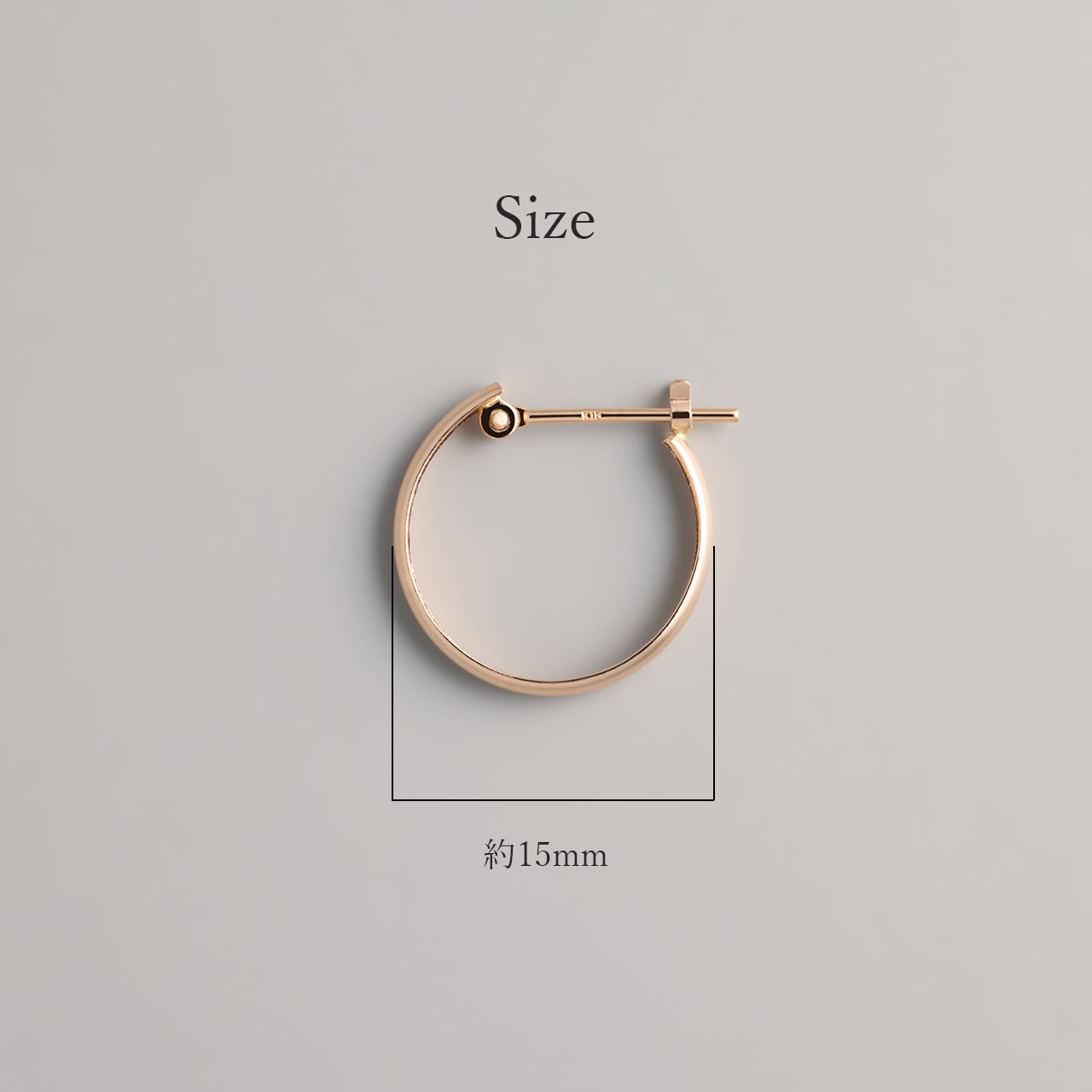 プレス加工によって仕立てた、軽やかな着け心地のミディアムサイズフープピアス。直径15mmの程よいサイズ感と、主張しすぎない細身のデザインが、耳元にさりげない品を添えます。