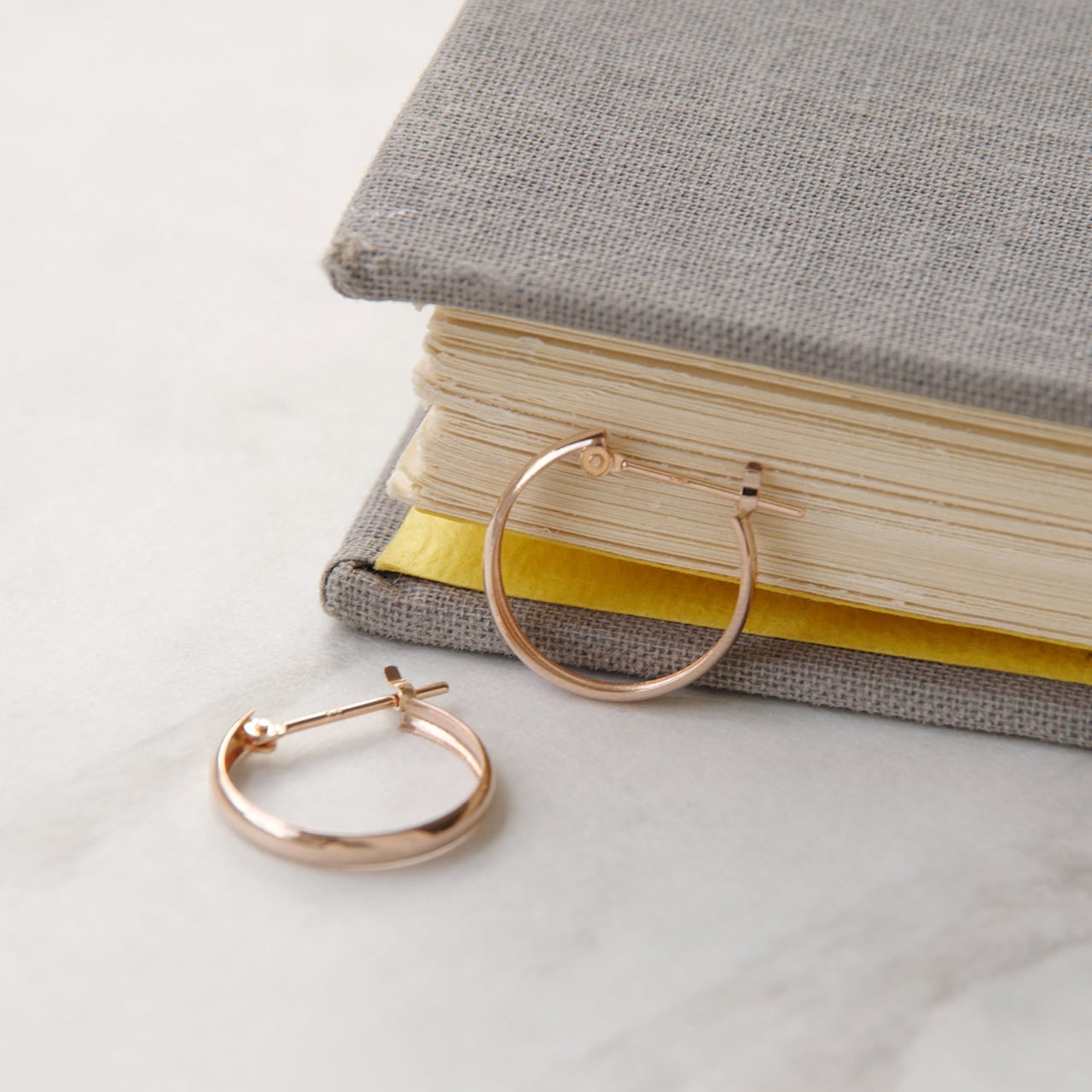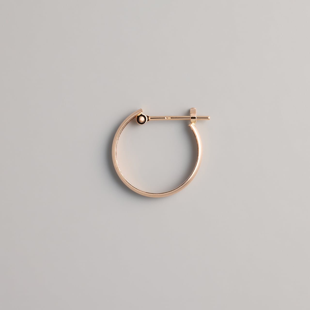 K18ピンクゴールドの柔らかな色味が肌になじみ、顔まわりを優しく引き立てる仕上がりに。シンプルだからこそ、日常使いからきちんとしたシーンまで幅広く活躍。長く愛用できる、大人のためのベーシックフープピアスです。