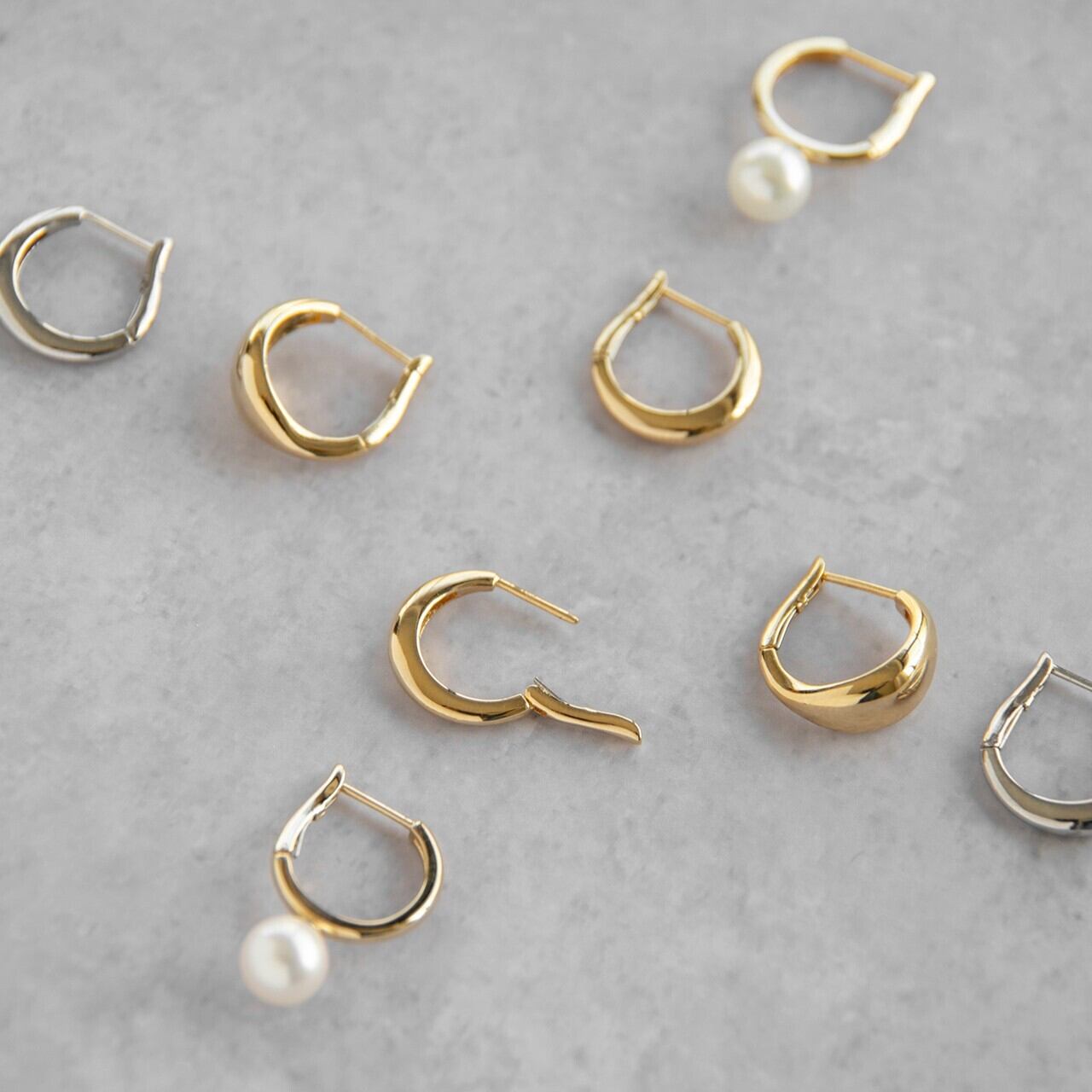 シンプルで程よいアクセントを与えてくれるフープ型のピアスは、オンオフ問わず、どんなスタイルもオールマイティーに決まる、ひとつは持っていたい万能アイテム。