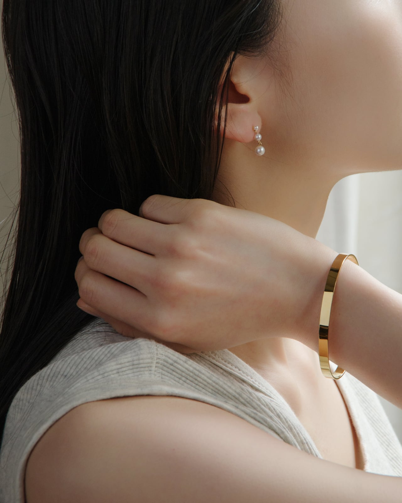 イエローゴールドとパールの組み合わせは、スタイルに大人っぽい華やかさをプラスしてくれます。連なる3個のパールサイズをグラデーションで変化させることで洗練された美しいフォルムに仕上げました。シンプルな美しさが際立つパールのピアスは、トレンドに左右されず永く愛用していただけます。シンプルながらシックになりすぎず、カジュアルコーデも上品で大人っぽい印象に。「月のしずく」とも呼ばれるアコヤパールの幻想的な輝きを、ぜひご堪能ください。