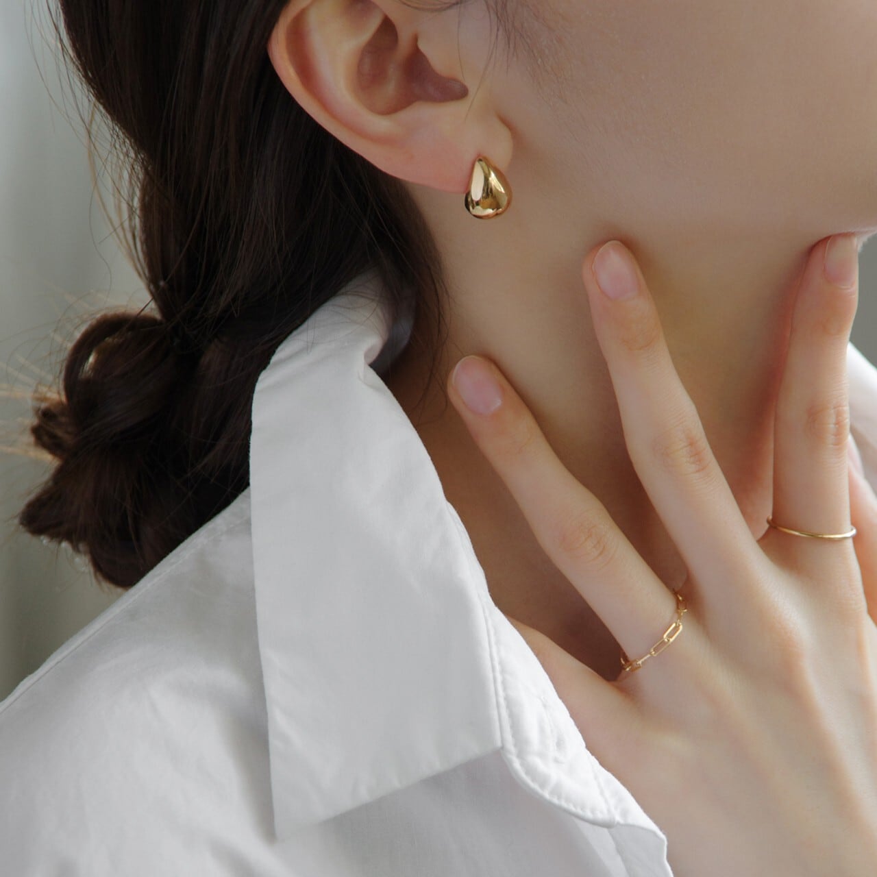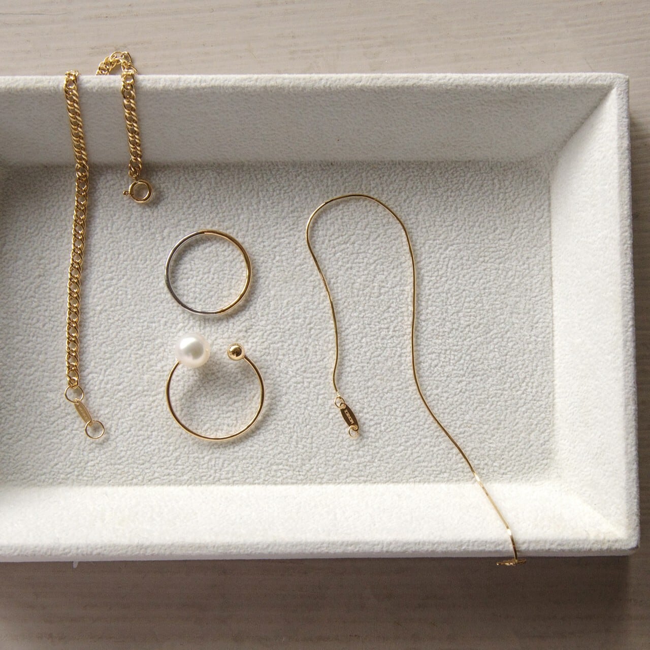 半分がK18で半分がプラチナで作られているのでリングヘッドを気にすることなく、ひとつのリングでいろいろな表情を楽しむことが出来ます。繋ぎ目が目立たないよう、職人の手で丁寧に仕立てました。プラチナのクールな雰囲気とキャッチ―なK18との相性も抜群で、身に着けているだけで気分も上がるアイテムです。その日のスタイリングや気分に合わせて、着ける角度は自由自在。なめらかなフィット感でつけていてもストレスを感じさせず、普段使いにはもちろん、レイヤードスタイルで楽しむのもおすすめです。