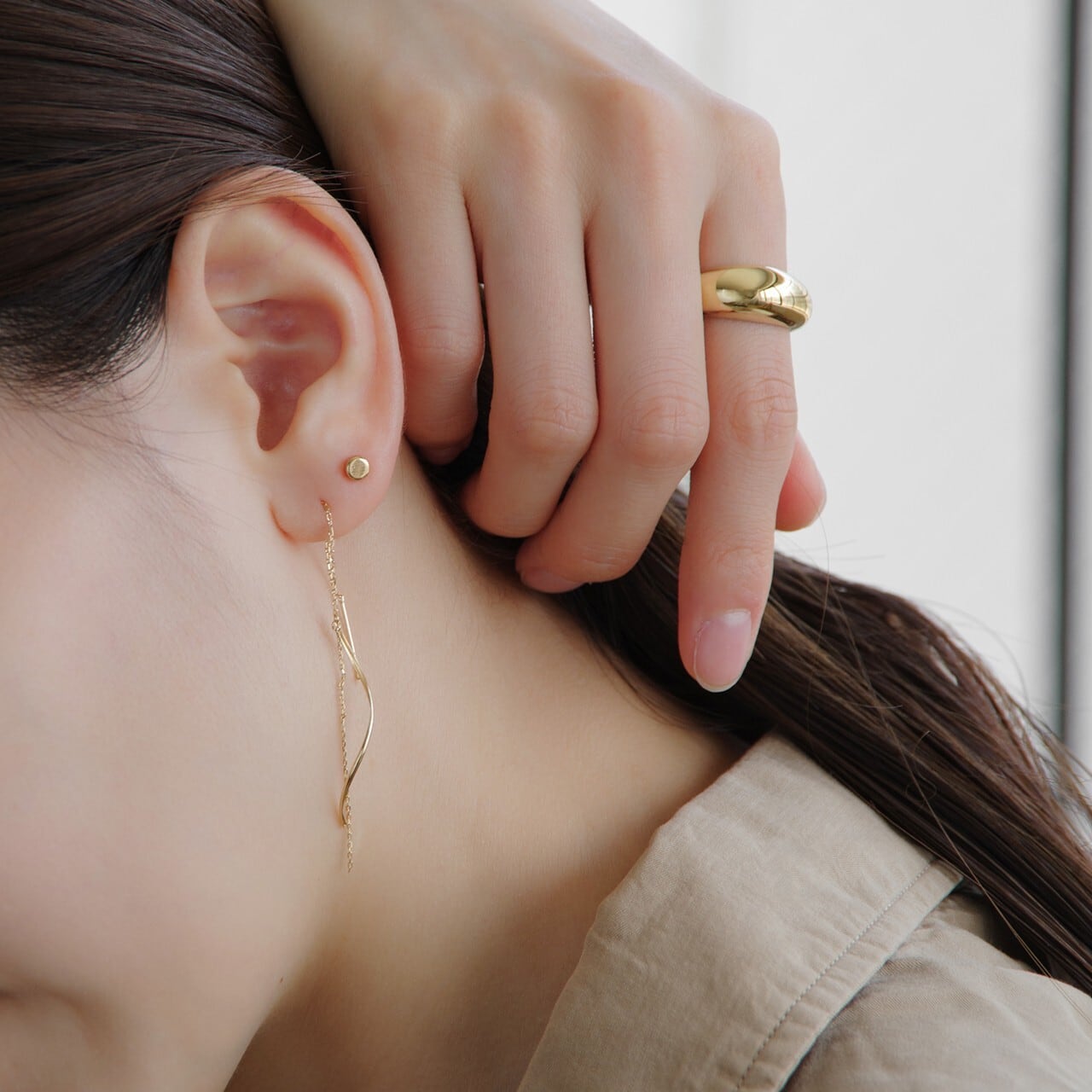 サークルフォルムのシンプルな美しさをK18ゴールドで表現しました。始まりも終わりもないこの形は、完全性・永遠・完璧さというものの普遍的な象徴でもあり、世界中から愛され続けている形です。職人がひと手間加えて創り出した、小さくもぷっくりした立体感とK18の艶やかなメタルの輝きが可憐さを感じさせます。小ぶりのピアスは着け心他も抜群で、コーディネートやシーンを問わず、他のジュエリーと合わせても使える万能アイテムです。