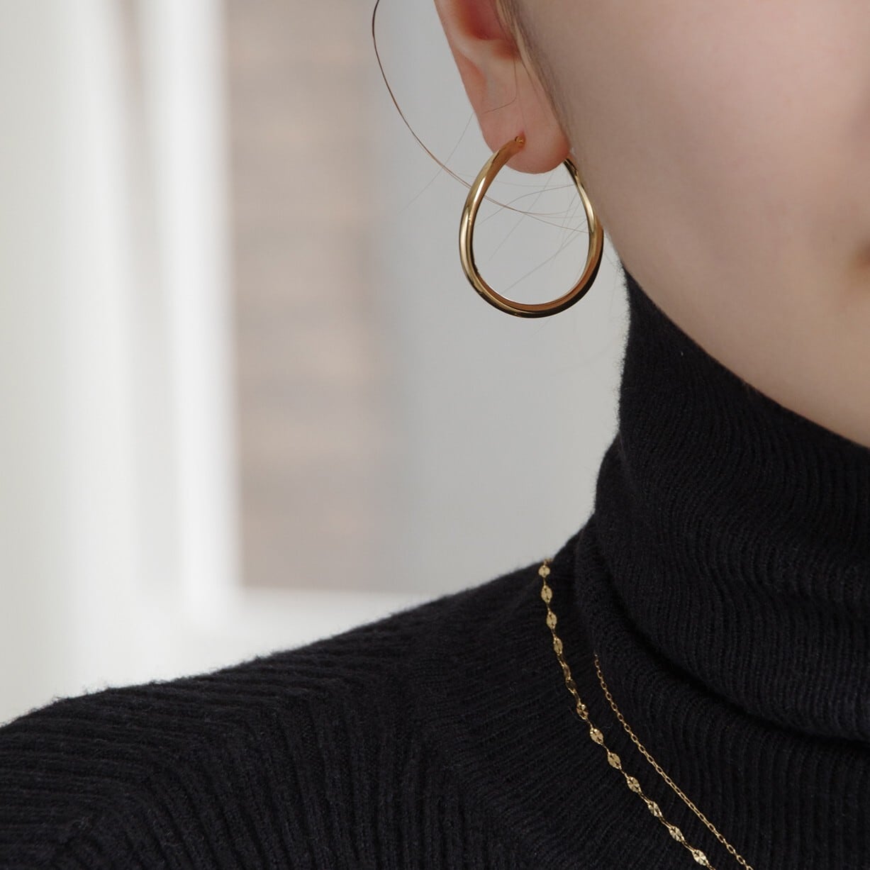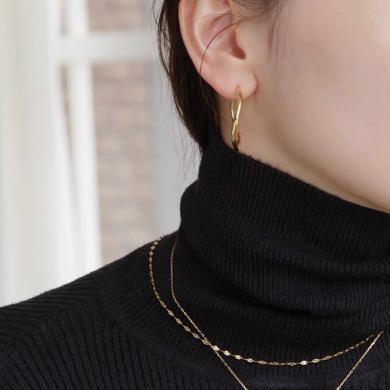 職人の手で、ひとつひとつ丁寧にひねりを効かせたK18ゴールドのウェーブフープピアス。手作りならではの世界観で、立体感のある美しいシルエットに仕上げました。品のあるシンプルなフープピアスはタイムレスに愛されるデザイン。程よい存在感が、横顔を美しく魅せてくれ、シーン問わずどんなコーディネートにも活躍する万能アイテムです。K18の滑らかな曲線美とオーセンティックな輝きをぜひお楽しみください。