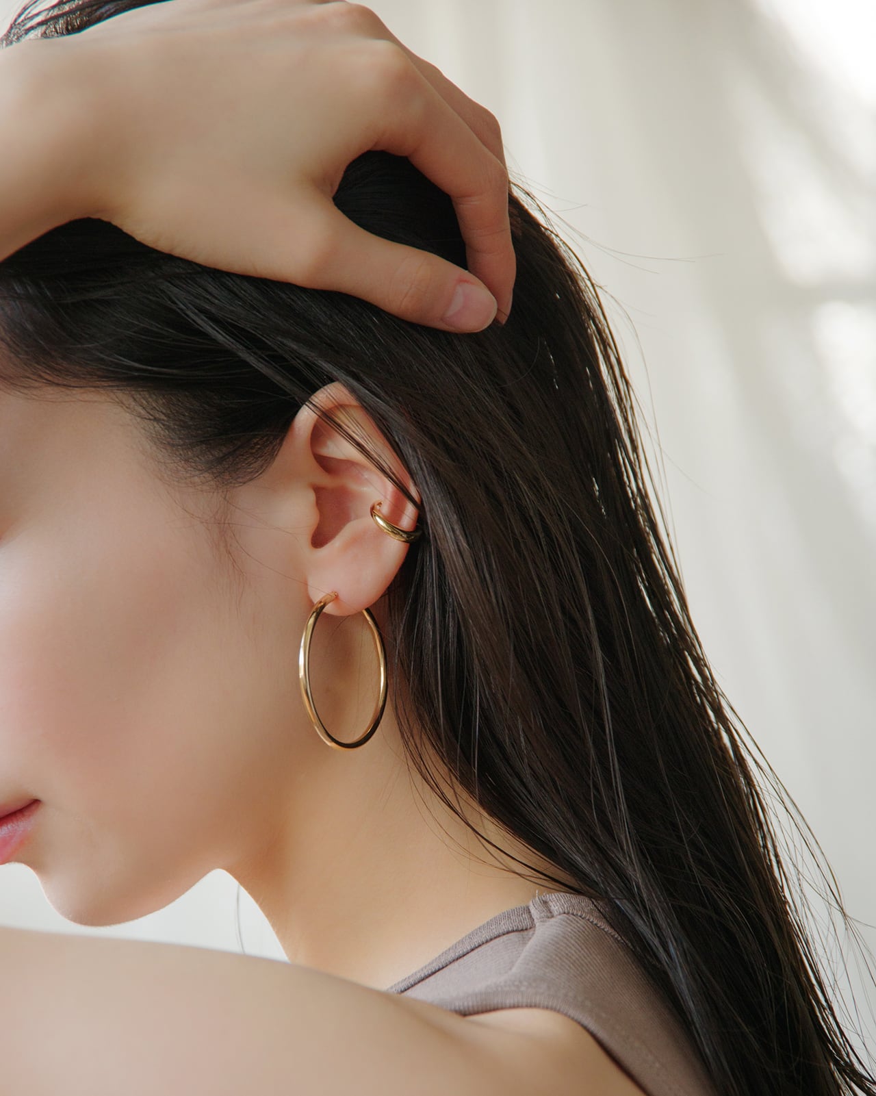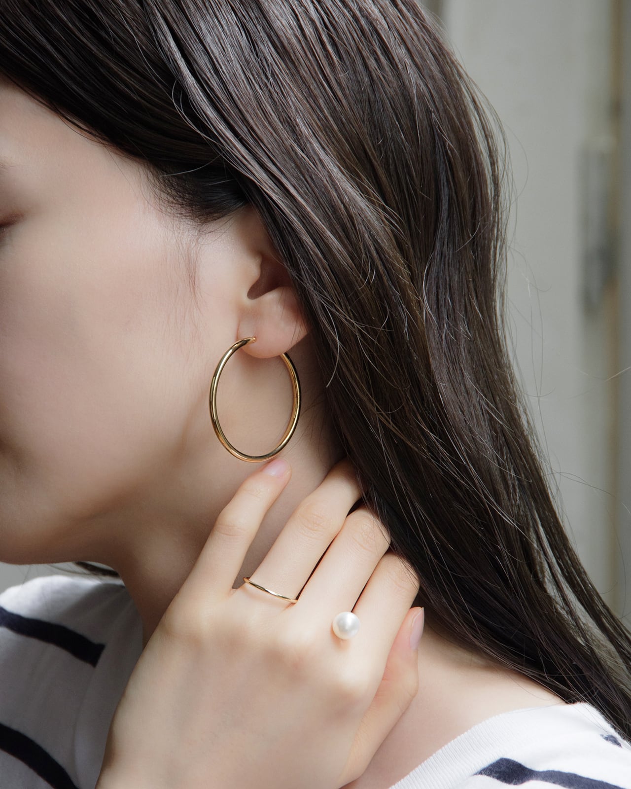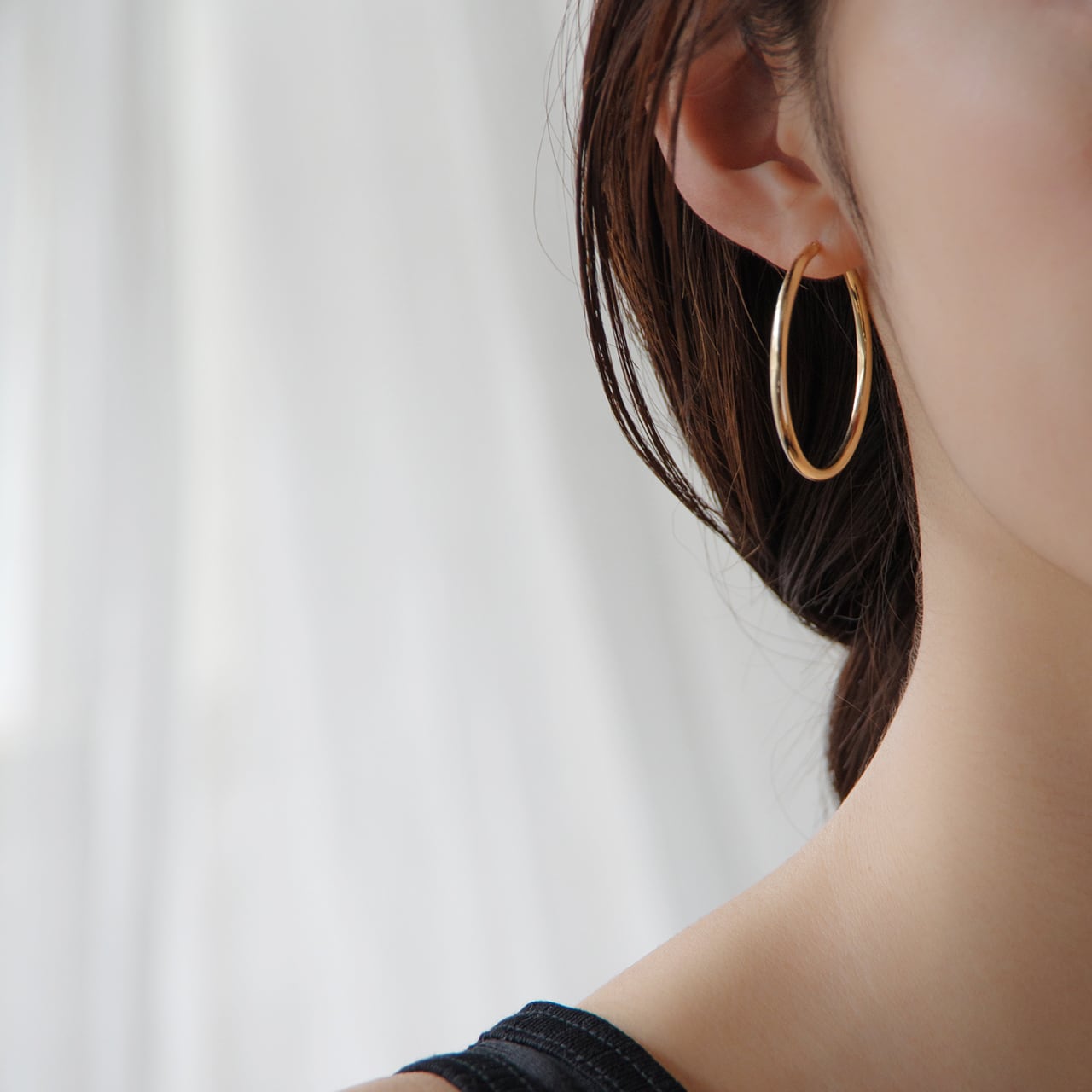 スタイリッシュで、程よい存在感の直径40cmのK18YGフープピアス。パイプ製フープのため、大ぶりながらも軽やかな着け心地をご体感いただけます。K18YGの艶やかで深い輝きがお顔まわりを華やかに仕上げ、適度なボリューム感がコーディネートをスマートな印象に。極めてシンプルなK18フープピアスは、流行にとらわれない “タイムレス”な デザインが魅力です。 大人の女性だからこそ着こなせる、高級感のあるK18YGの輝きを存分にお楽しみください。