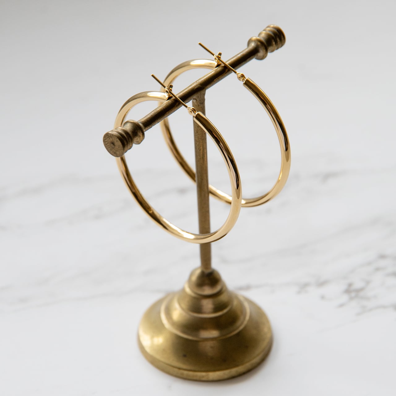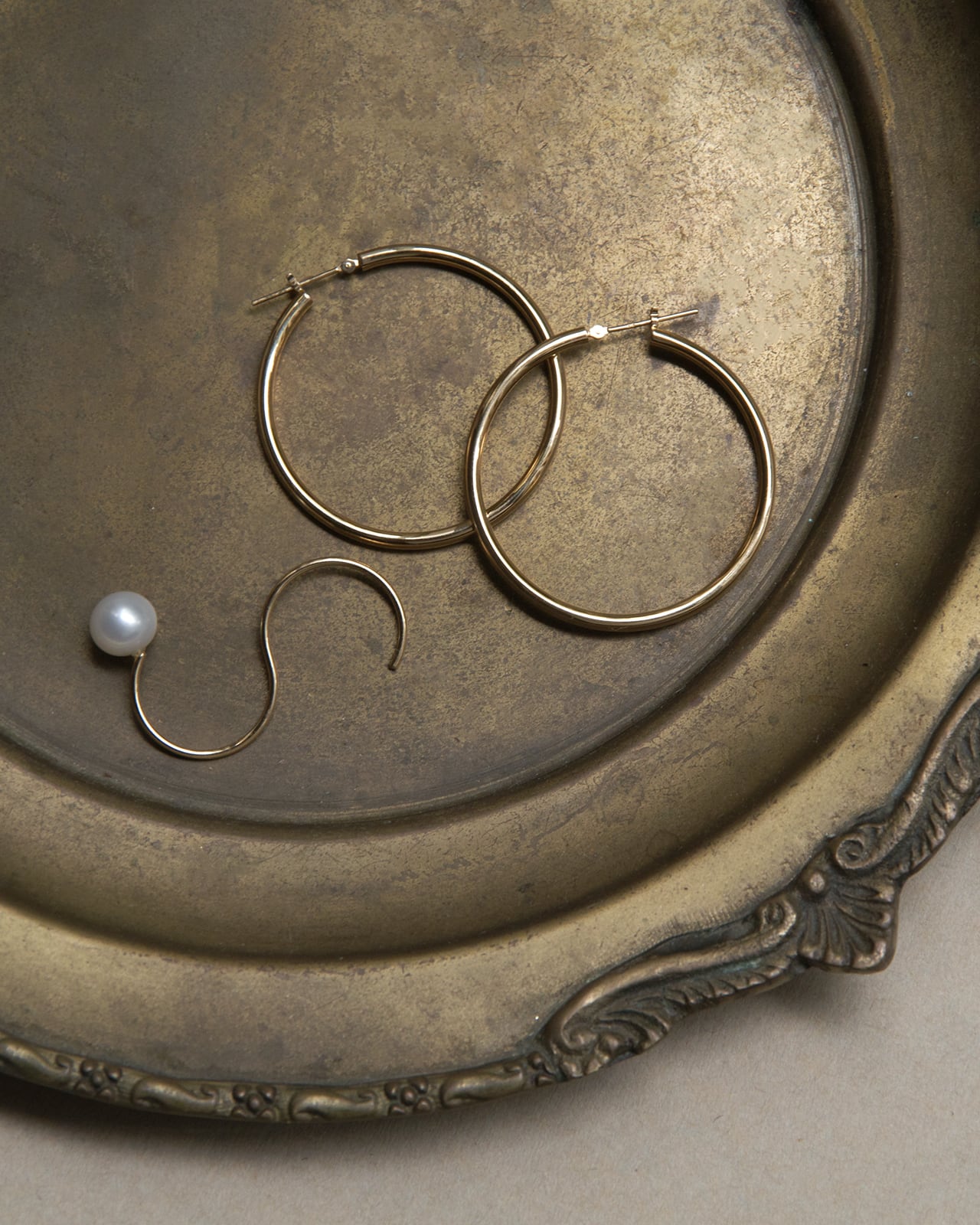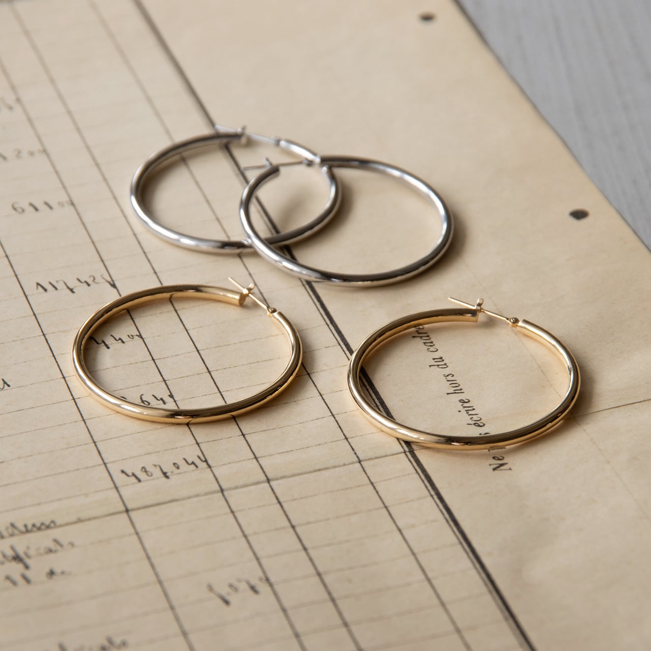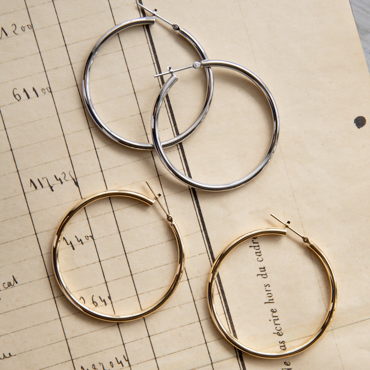 スタイリッシュで、程よい存在感の直径40cmのK18YGフープピアス。パイプ製フープのため、大ぶりながらも軽やかな着け心地をご体感いただけます。K18YGの艶やかで深い輝きがお顔まわりを華やかに仕上げ、適度なボリューム感がコーディネートをスマートな印象に。極めてシンプルなK18フープピアスは、流行にとらわれない “タイムレス”な デザインが魅力です。 大人の女性だからこそ着こなせる、高級感のあるK18YGの輝きを存分にお楽しみください。